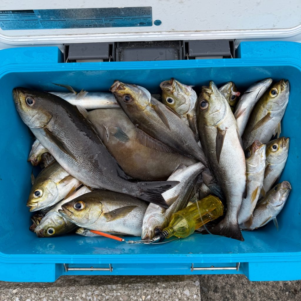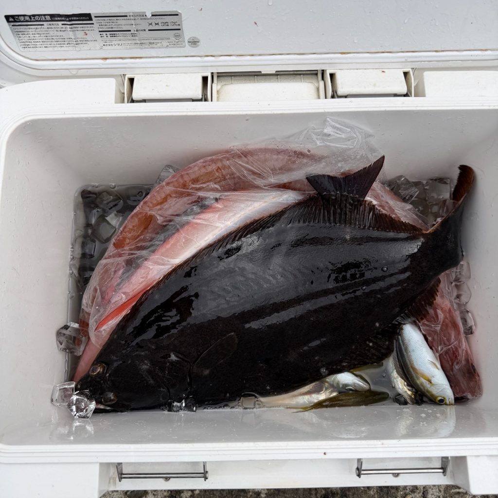 本日はイサキ、泳がせで出船。朝一アジを釣りエサ、お土産を確保して泳がせとイサキのミックスでスタート。イサキは中々型の良いサイズを定量。泳がせはヒラメ1.6kgとヤガラ。途中風が強くなって来たので予定より30分早くあがりました。