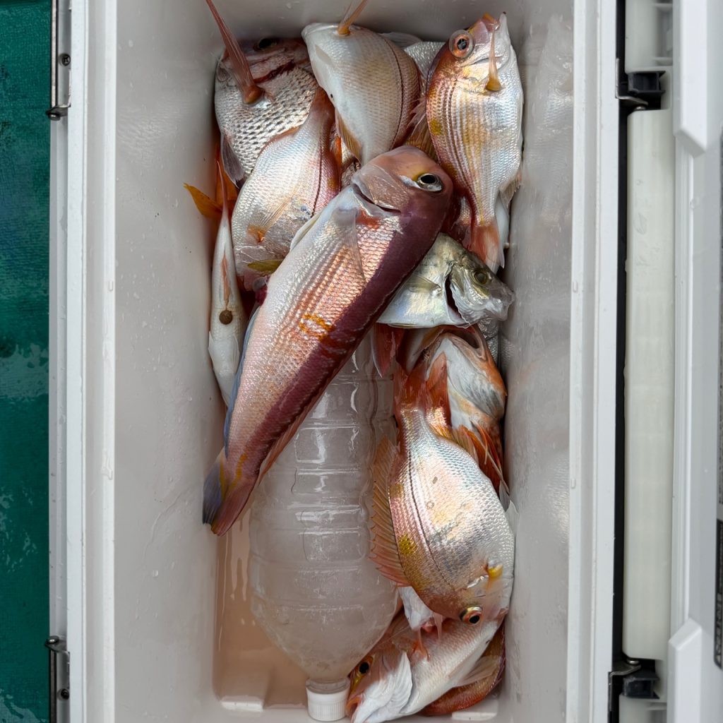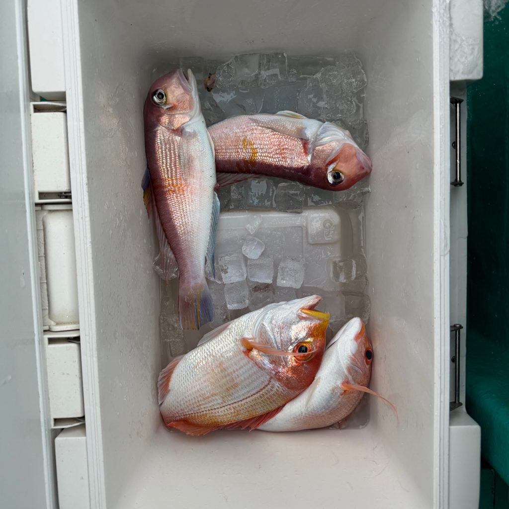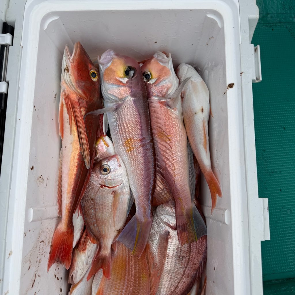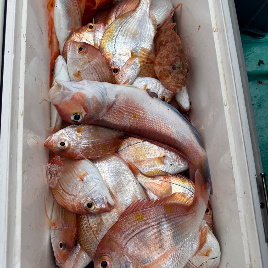 本日は台風の合間に五目へ出船。朝のうちはウネリがあり釣り辛い中アマダイが直ぐに顔を見せてくれました。その後潮が流れずキダイ等が顔出し、最後にウネリも収まりまた潮が流れ出しアマダイの顔が見れました。釣果はアマダイ、キダイ、ハナダイ、アヤメカサゴ、ホウボウ、ガンゾウヒラメ、オニカサゴと五目は達成。皆様お土産になりました。