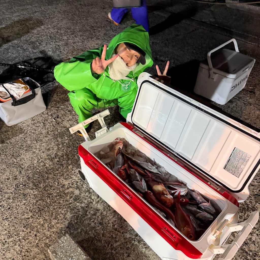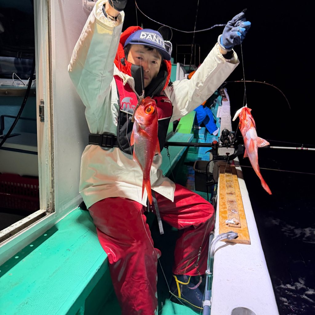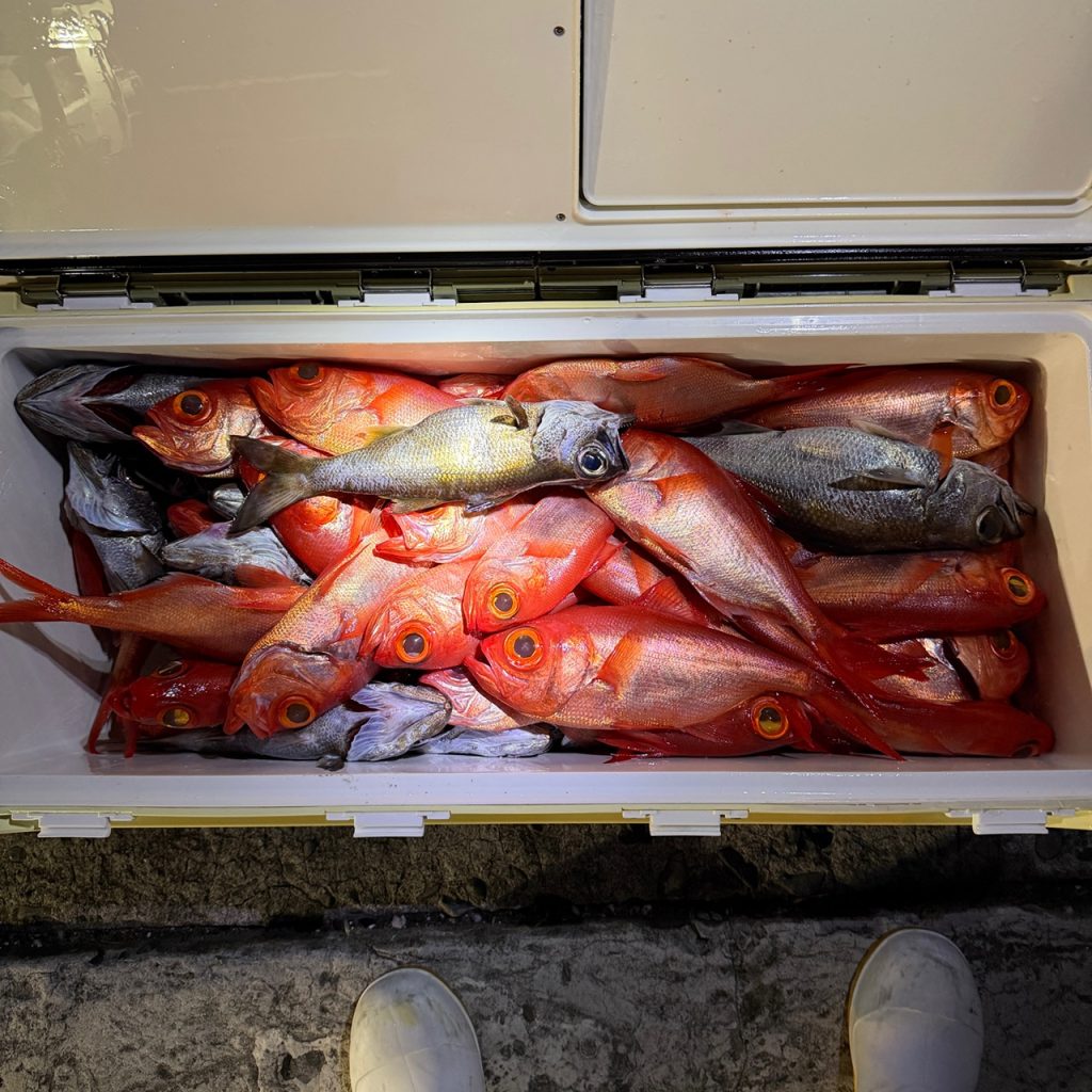 今夜も半夜ムツ、キンメへ出船して来ました〜。ウネリが有ったものの潮も早く無く良い感じでの流しが出来ました。前半はムツ、中盤から終盤はキンメと少々ムツ混じり。キンメのサイズもgood!皆様お土産になりました。