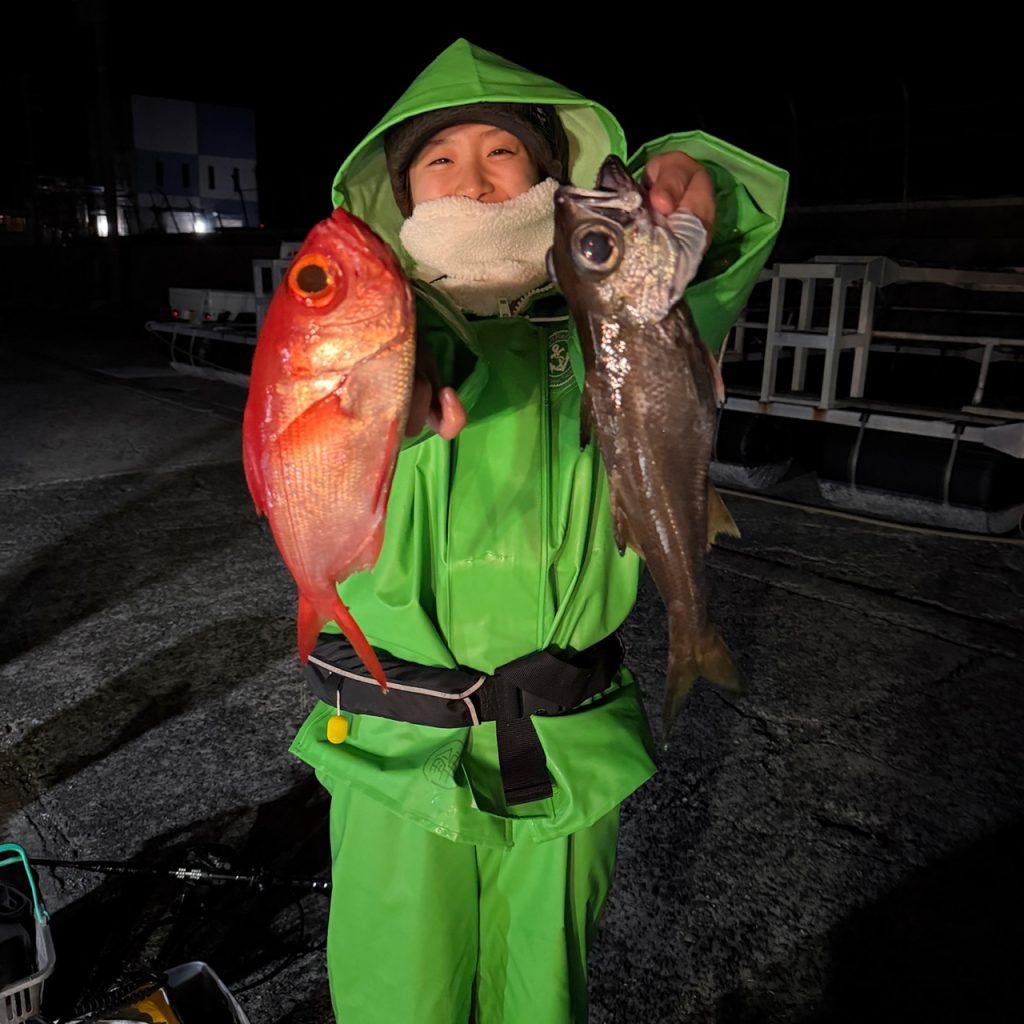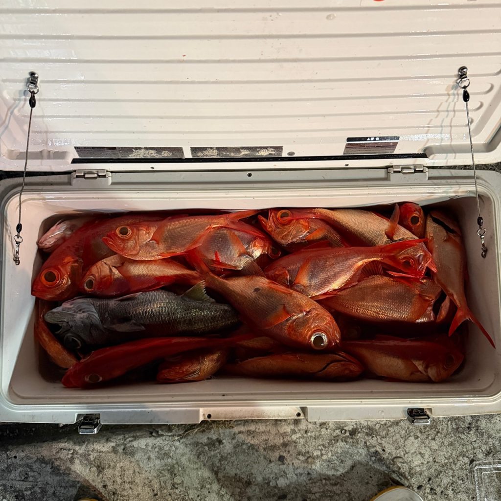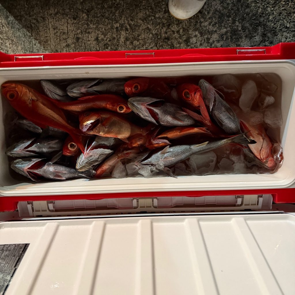 今夜も半夜ムツ、キンメへ出船して来ました〜。ウネリが有ったものの潮も早く無く良い感じでの流しが出来ました。前半はムツ、中盤から終盤はキンメと少々ムツ混じり。キンメのサイズもgood!皆様お土産になりました。