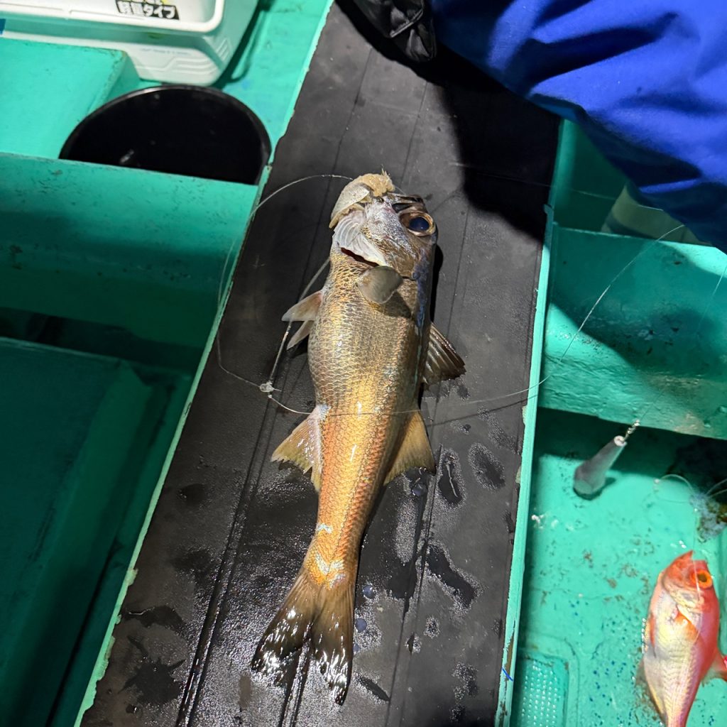 本日2便目はムツ、キンメで出船でした。珍しくベタナギで潮もゆっくり!こんな日あるんだ〜って感じの釣日和でした。釣果はムツはつ抜けの方半分、キンメは皆様定量。お土産になりました。