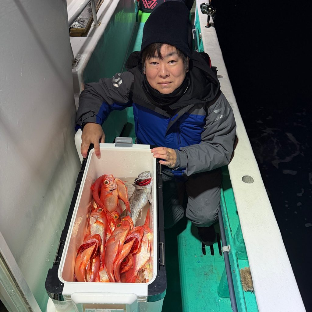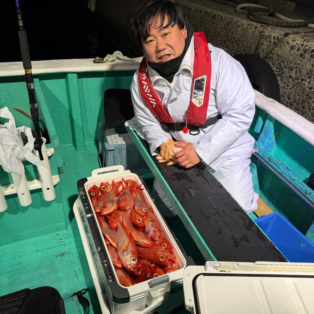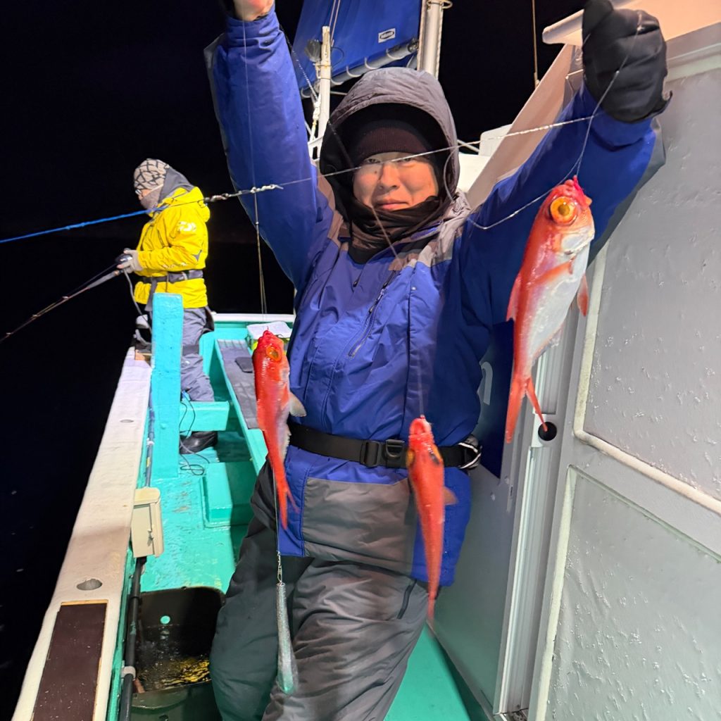 半夜ムツ、キンメ 2025年12月27日 最終更新日時 : 2025年12月27日 三五八丸管理者 本日2便目は半夜ムツ、キンメです。キンメ初挑戦のお客様ばかりでしたが皆様お土産以上の釣果にご満足頂きました。海も良かったし、電動リール初卸でウロコ付けの方も定量でご満足でした。 明日は午前オニカサゴ、夜はムツ、キンメです。