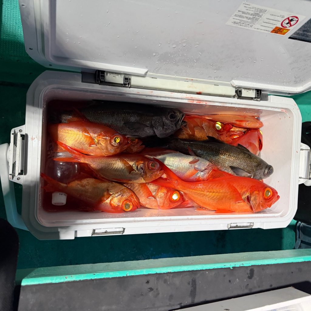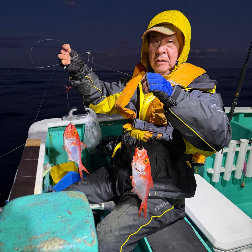 今年初の半夜便へ出船して来ました。ウネリと潮が早いと僚船から聞いていたので心配しましたが、上手く流せてウネリも収まり終始入れ食い状態でした。ジグで参加のお客様もクーラー満タン、キンメの型が良く皆様お土産になりました。